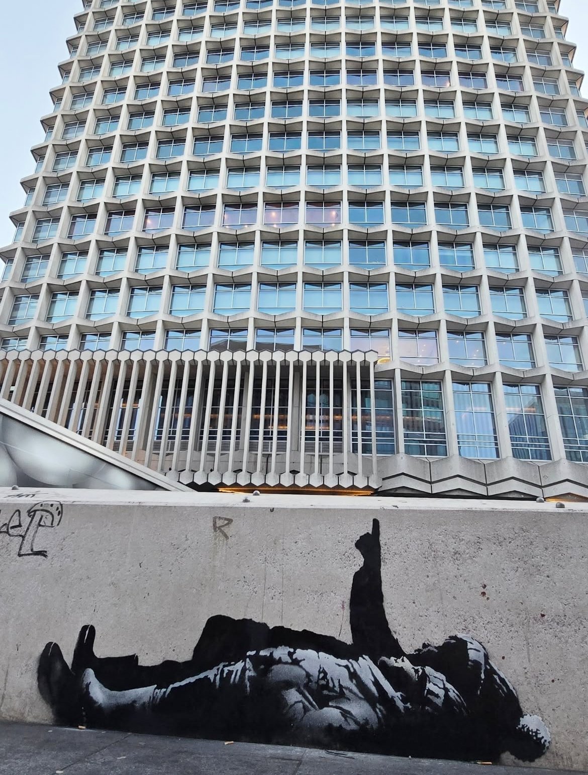 Banksy hasn't confirmed the piece on Instagram yet, but the placement speaks volumes. In Britain today, one young person becomes homeless every four minutes. An estimated 4.5 million children—31 percent of the total—live in poverty. The mural's children aren't romanticized figures but participants in an urban economy where inequality has become structural wallpaper. Their gesture of looking up is quietly political: Are they playing childhood games, guessing shapes in clouds? Or does their pointing finger direct our gaze toward Centre Point itself, now converted to luxury apartments while the homelessness crisis has only deepened?