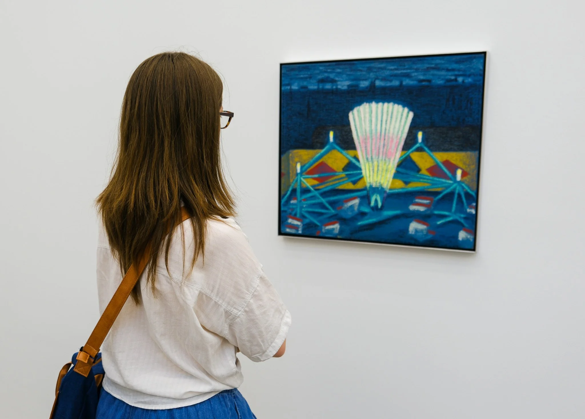 A viewer considers, Coney Island Spin Ride Astroland, 2007 Oil stick on linen. Photo by Jamie Lubetkin