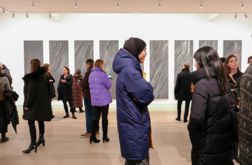 The line to get into the Cy Twombly show at Gagosian's Madison Ave. Gallery curled twice around the lobby and threatened to send some into the street. These art lovers got in early. Photo by Jamie Lubetkin