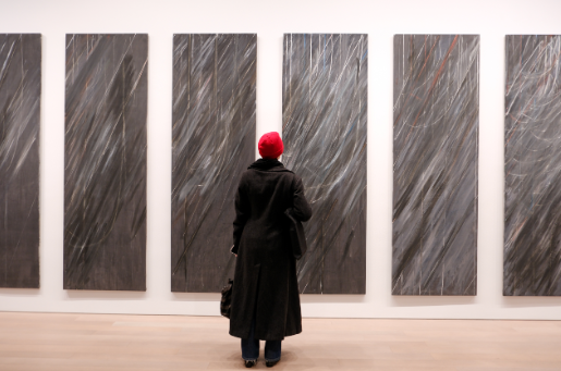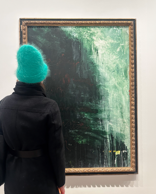 A woman looks at "Paesaggio," one of a group of landscape abstractiions Twombly painted in the 1980s. Photo by Jamie Lubetkin