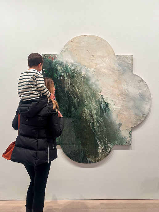A woman and a boy admire one of several quadrefoil paintings on display at Gagosian. Photo by Jamie Lubetkin