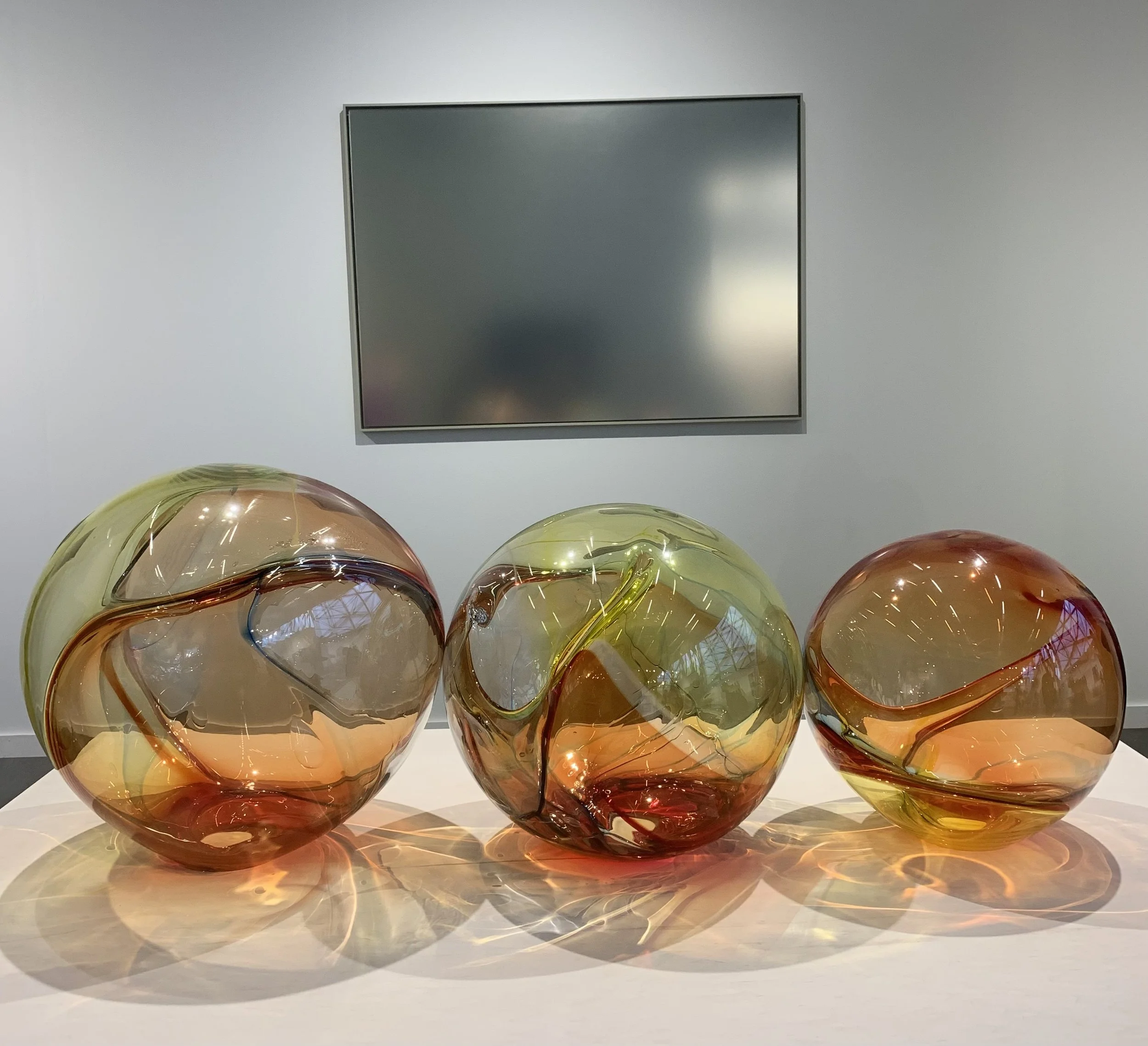 Jean-Luc Moulène, Les Trois Boules Multicolores (The Three Multicolored Spheres), 2022, glass spheres, Miguel Abreu Gallery, 88 Eldridge Street &, 36 Orchard St.