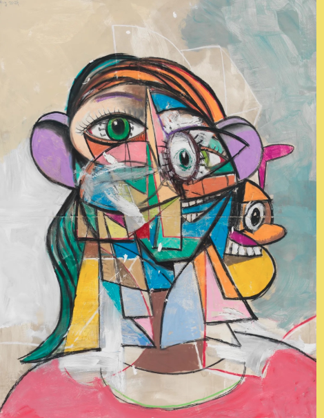 George Condo, Multiple Personalities (2024). Acrylic and pastel on paper. 78 × 60 in. Photo: Matt Grubb. Courtesy of Hauser & Wirth. © George Condo