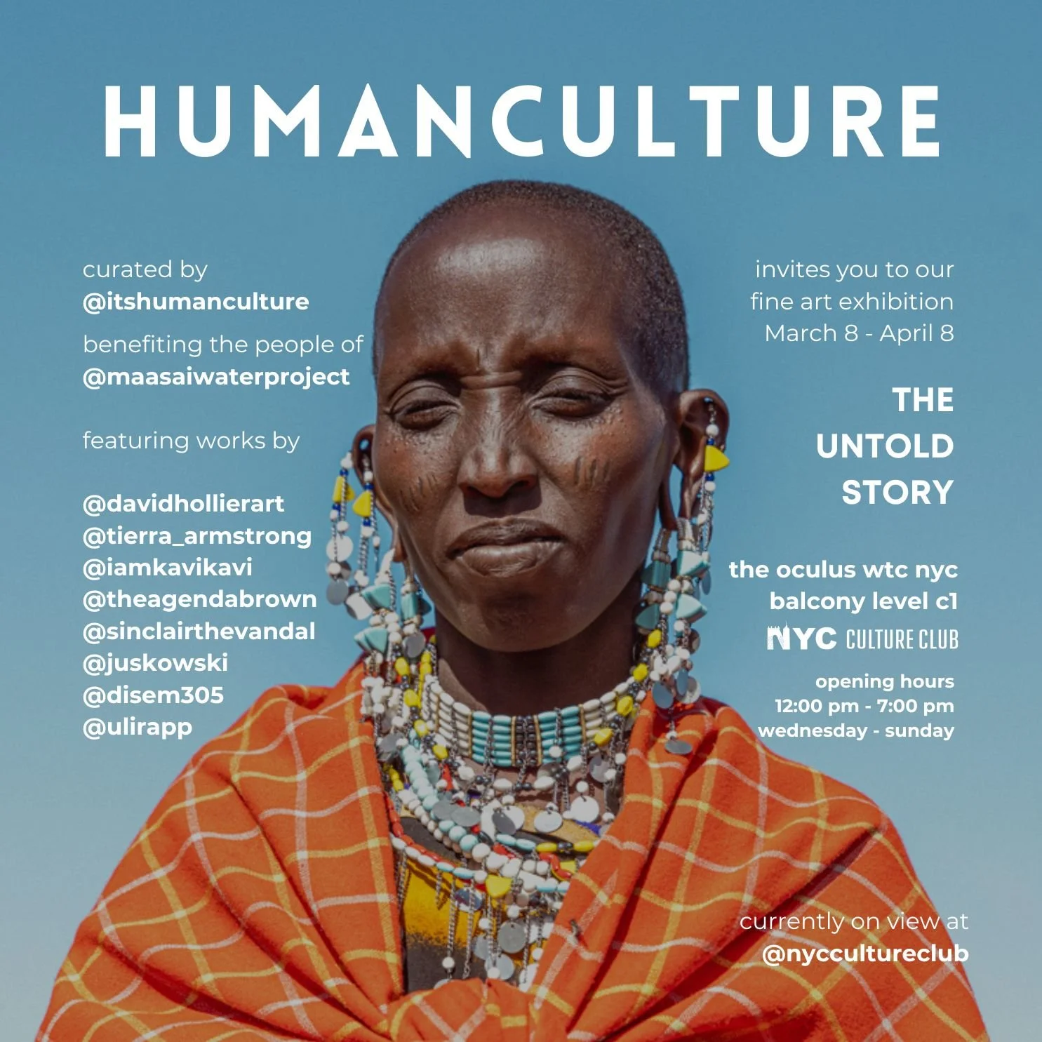 Curated by@itshumanculture the event will benefit the people of @maasaiwaterproject. The exhibition will feature art by @davidhollierart @tierra_armstrong @iamkavikavi @theagendabrown @sinclairthevandal @juskowski @disem305 @ulirapp