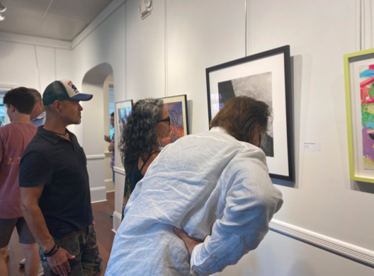 Onlookers gaze at work by popular Easthampton artist John Pomianowski