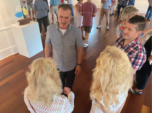 Curator Haim talks to attendees about his painted shoe, and the inspiration for the show.