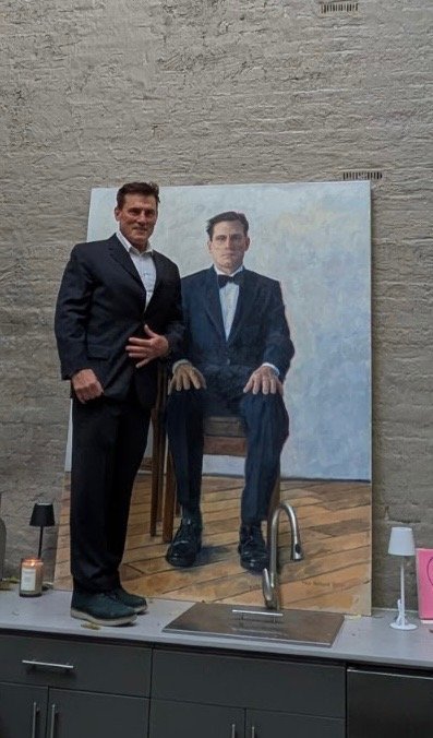While he acknowledges pursuing two distinct styles, drip paintings and oil portraits, the two are not as different as they may appear. “The drip work and the oil paintings have a different aesthetic but deal with some of the same formal issues to create a representational picture – issues such as contours, landmarks, highlights, shadows, and proportions. The approach to the different styles is the same and includes a methodical ethic, trial and error, and experimentation,” he said.